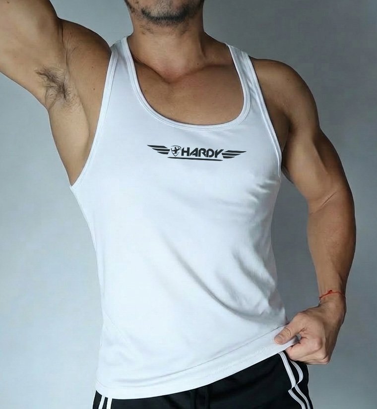 Camiseta Tank top blanco corte anatómico, esta camiseta sin mangas cuenta con un amplio escote en que le brinda un look relajado y moderno para cualquier ocasión.